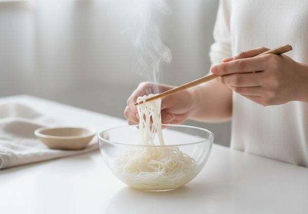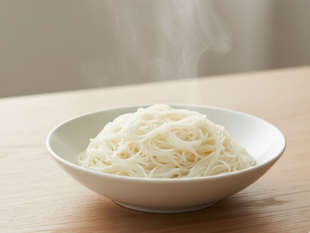 するりとなめらかな口当たりの白米麺。